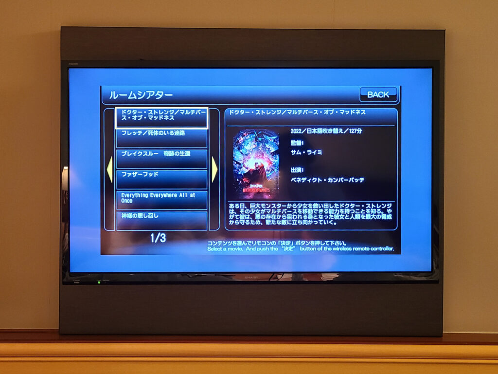 また、テレビにはルームシアターもあり、映画を見ながらのんびり過ごすことも可能でした。