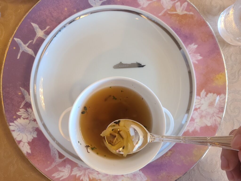 ディナーはメインレストランでコース料理をいただけます。どのお料理も美味しく、たくさんの乗船客が一度に集まっているにも関わらず、待ち時間もなく次々とお料理を提供いただけて大満足。