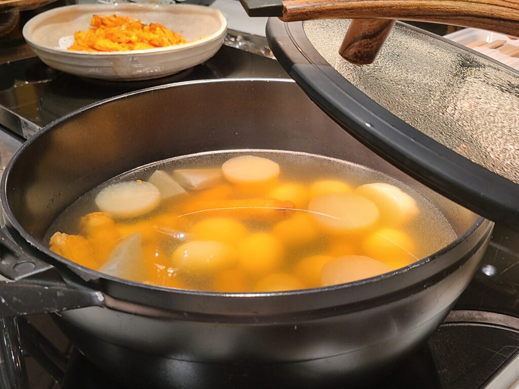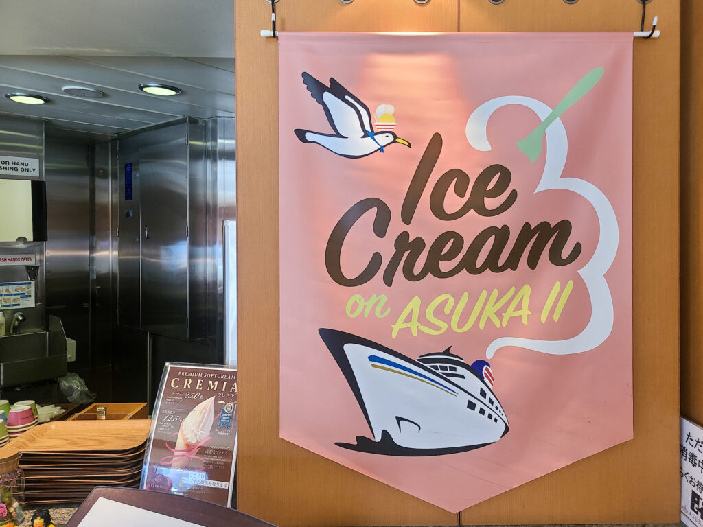 アルコールドリンクは出港前のサービス以外は全て有料なのですが、うどんのような通常ありそうなメニュー以外にも生ハムやチーズ、焼き鳥、串カツ、おでんまであり、ついついお酒を飲みたくなってしまう嬉しいサービスで、私のイチオシサービスです。
