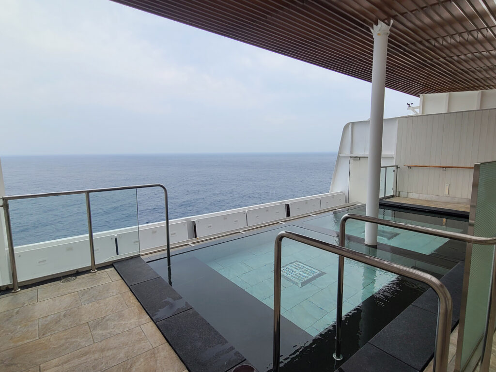 飛鳥Ⅱには露天風呂付の大浴場があります。これが日本船ならではの推しポイントのようですが、露天風呂以外にも魅力が詰まった大浴場でした。