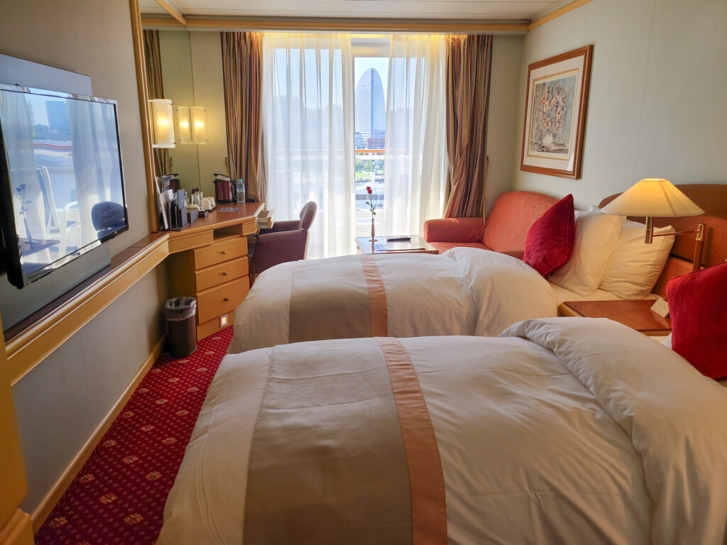 私たちが今回泊まったのは9デッキのプライベートバルコニー付ツインルーム。