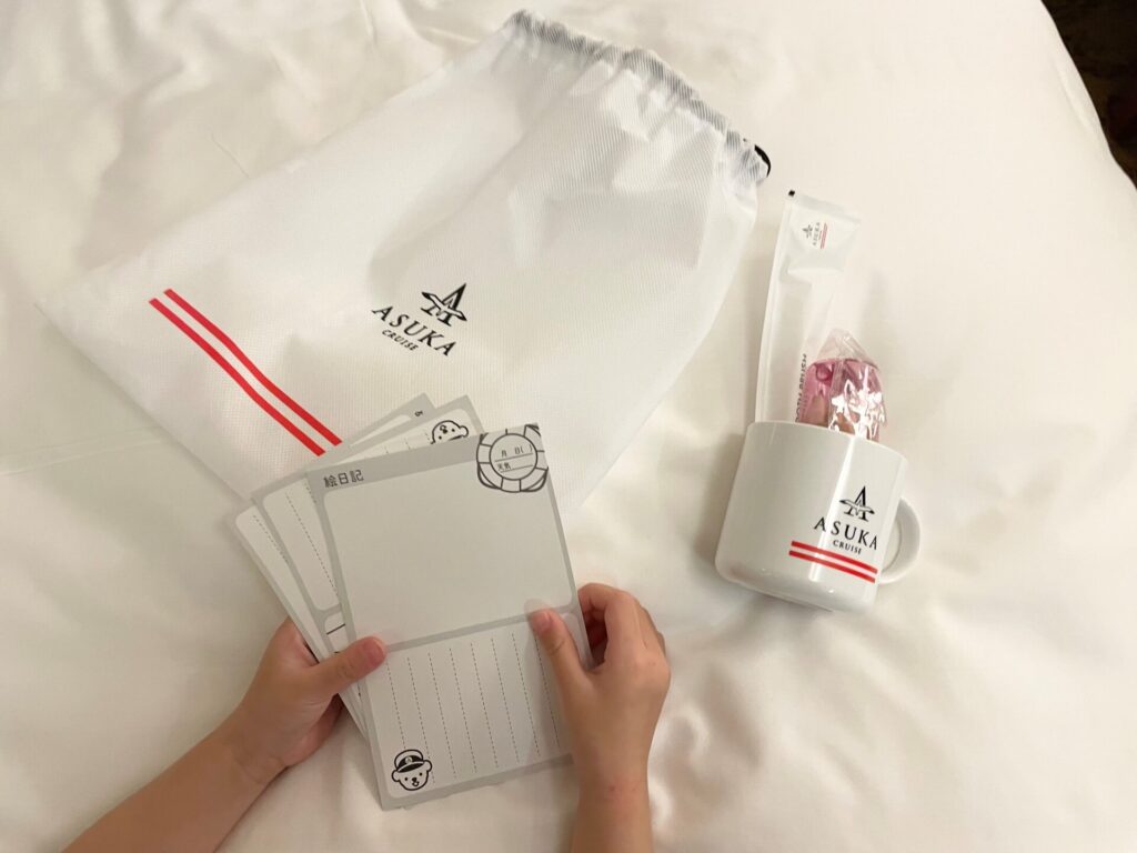 アメニティは大人と同じものが子供の分まであり、それとは別にオリジナルのすぐに楽しめる絵日記はがき、色鉛筆、コップなど有り難い限りでした。
