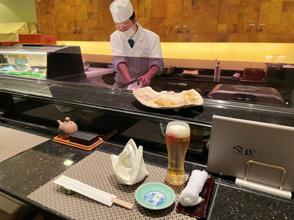 今回はランチでも鮪やスズキの握り寿司があって満足度高かったのですが、やっぱり有料の特別レストランの寿司も気になって。