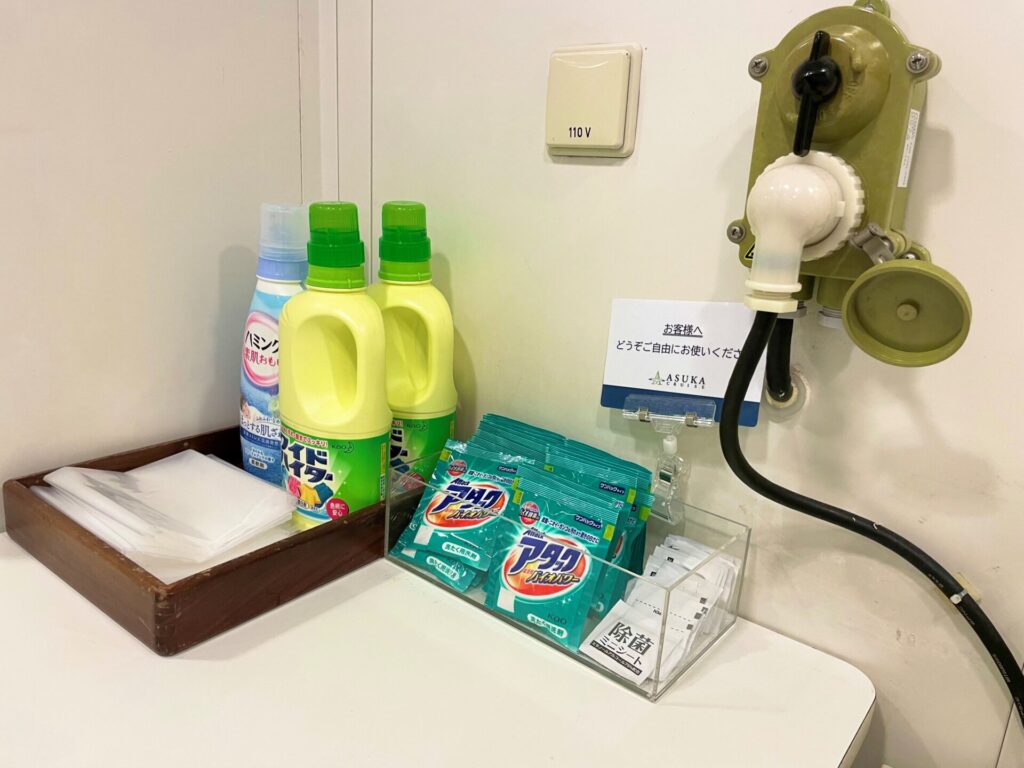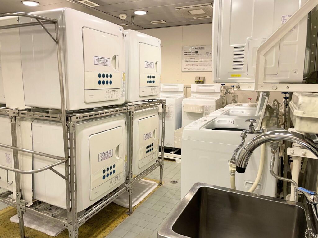 そして飛鳥IIは無料でセルフランドリーを利用できます。柔軟剤なども揃っているので、ほぼ洗濯を終えて帰宅したのはここだけの話(笑)スーツやドレスも(客室から依頼できる)通常のランドリーサービスも良心価格であります。