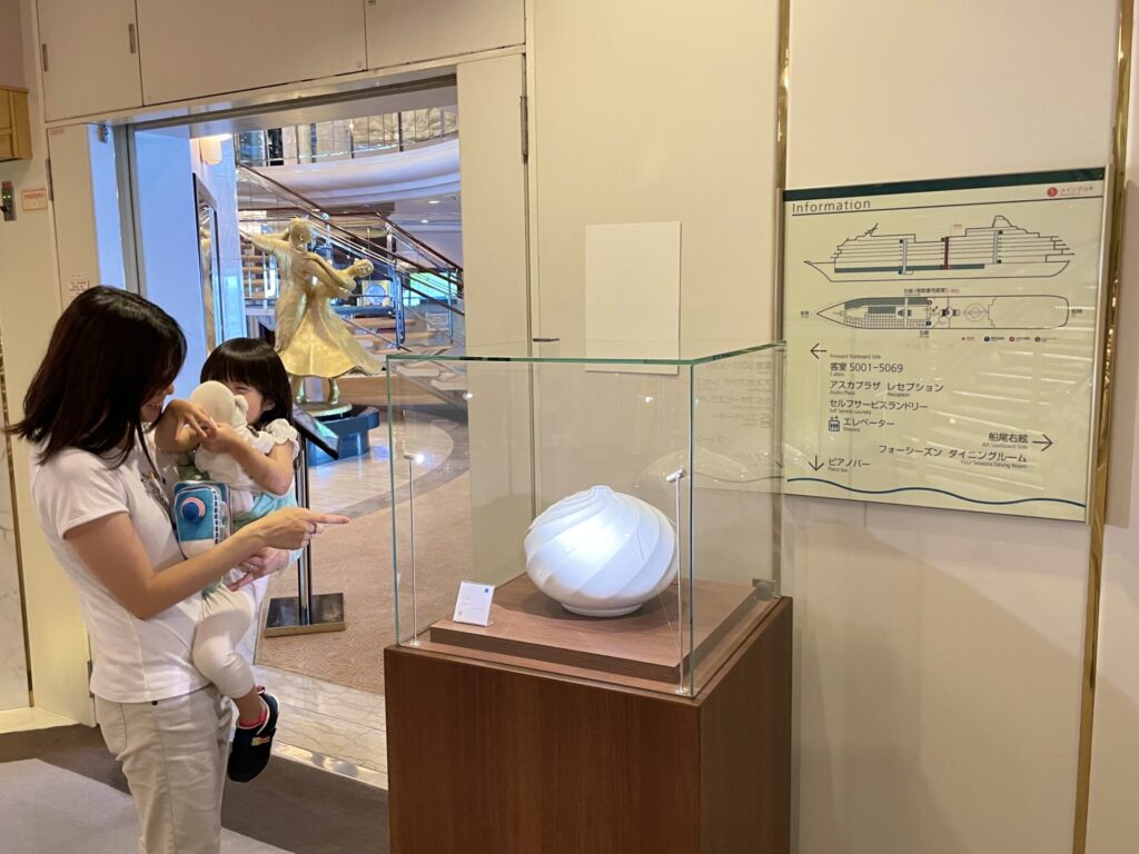 飛鳥IIの船内各所に(アスカプラザやイー・スクエア、和室・游仙、リドガーデンなど)人間国宝をはじめとする作家さんの作品が展示されています。