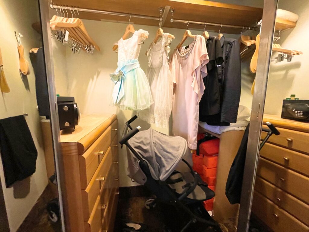 広々したクローゼットにはベビーカーも収納でき、1~3歳の幼児用救命胴衣もありました。避難訓練はマスターステーションにて、昨今は簡素化される船会社もある中、実際に出向くので気が引き締まる思いになりました。
