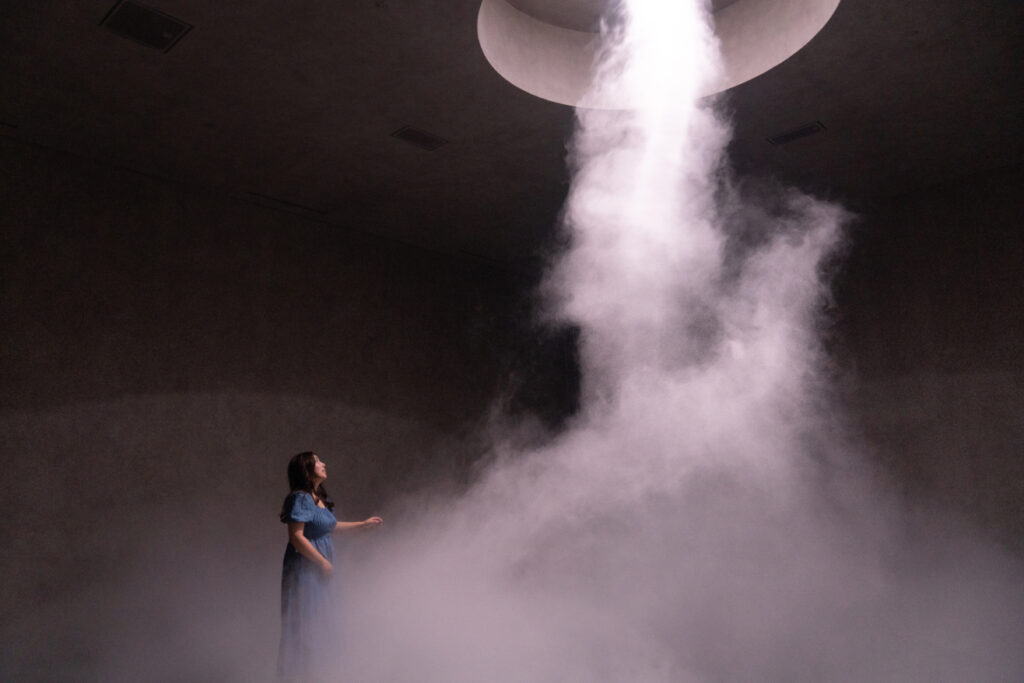 空間に広がるのは、光と音、そしてほのかに漂う香りまでもが一体となったアートの世界。映像をただ眺めるのではなく、自然の記憶が全身にしみ込んでくるような、不思議な没入感に包まれる場所でした。