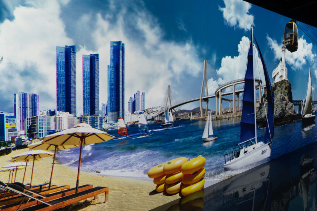 観光スポットや、港の風景が次々と映し出され、まるで釜山そのものに包まれているような感覚に。