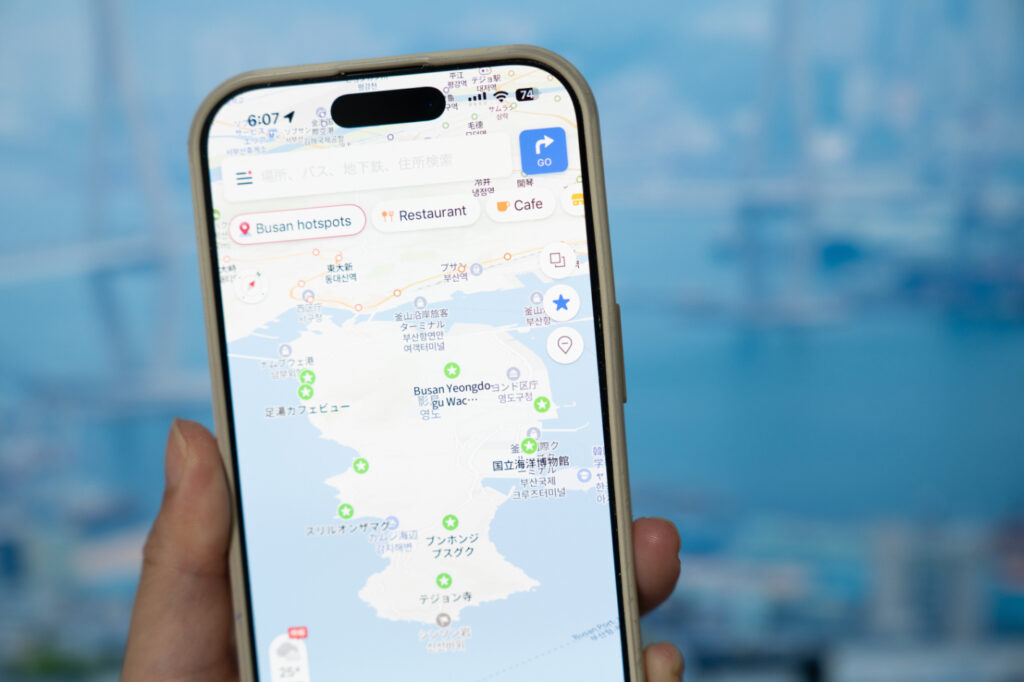 韓国では、Googleマップが日本のようには使えません。地図の表示はできても、ルート検索やナビ機能は制限が多く、観光中には正直ちょっと不便です。