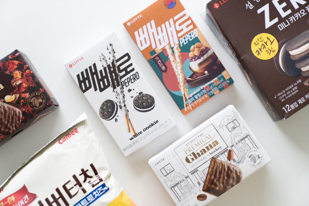 「ロッテスーパー」では韓国らしいお菓子をかごに入れながら、気づけばお土産探しに夢中に。