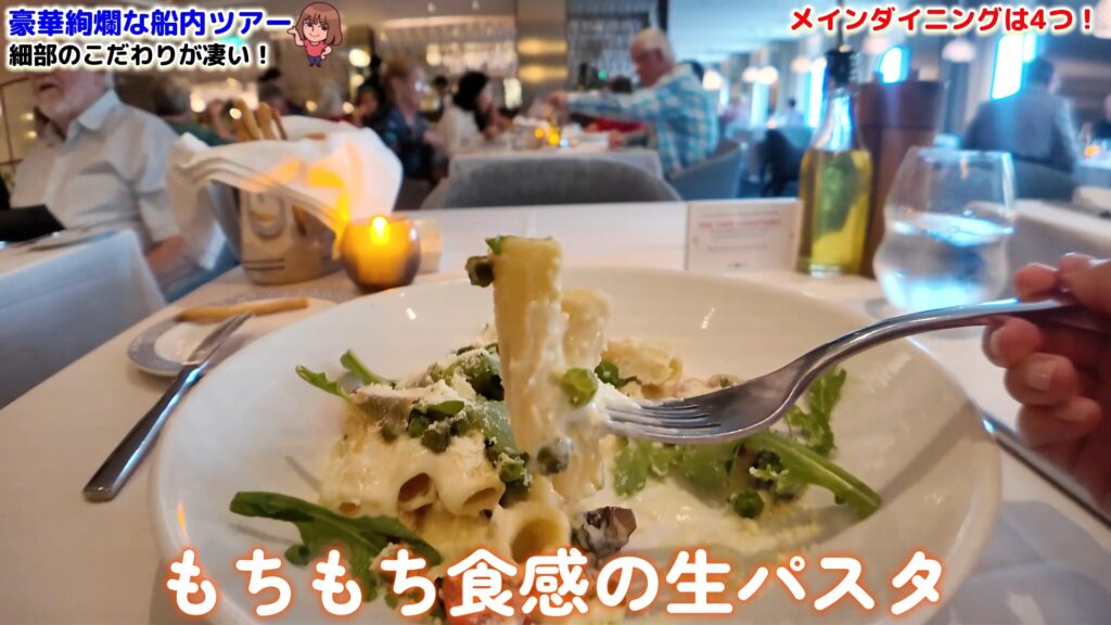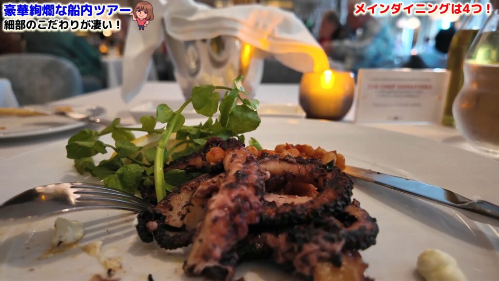 食事の楽しみもまた、セレブリティ・エッジの大きな魅力の一つ。メインダイニングは4つの異なるテーマで構成されており、その日の気分に合わせて選ぶことができます。