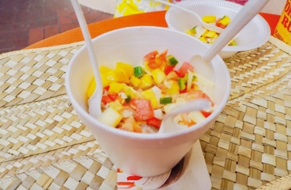 この日のランチはバハマ名物、コンク貝のサラダです。