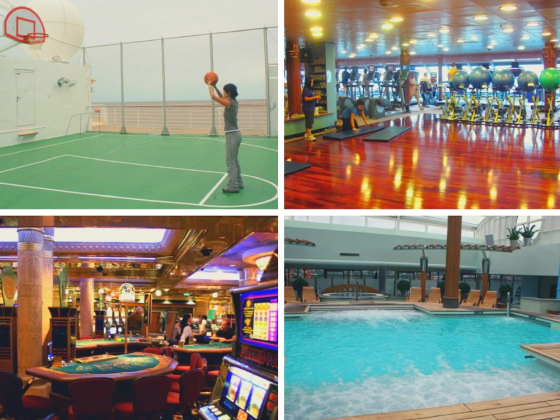 参加したいイベントがない時は、バスケットをしたり映画をみたり、プールやジャグジー、ジムで体を動かしたり。利用しなかったがカジノやゲームセンターもある。
