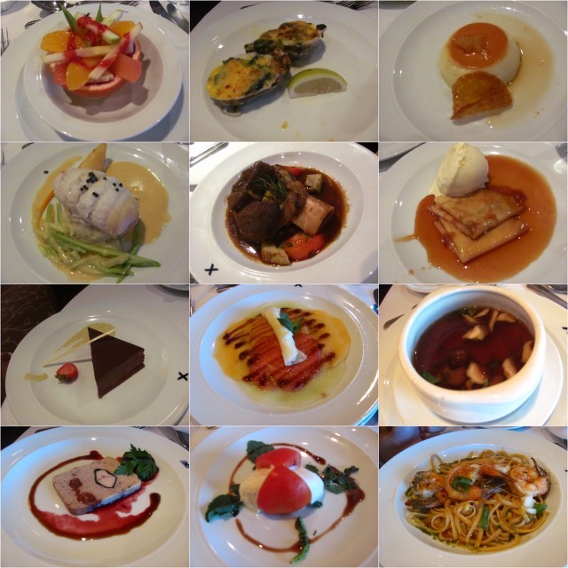 船内には、24時間利用できるレストランや、各階にカフェやバーが点在しており、いつでもどこでも食事を楽しむことができた。私たち夫婦は、朝食は24時間利用できるビュッフェスタイルのレストラン、昼食はカフェ、夕食時には少しオシャレして、コース料理が頂けるメインダイニングレストランを利用することが多かった。