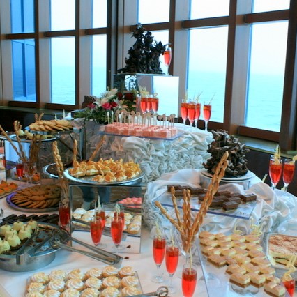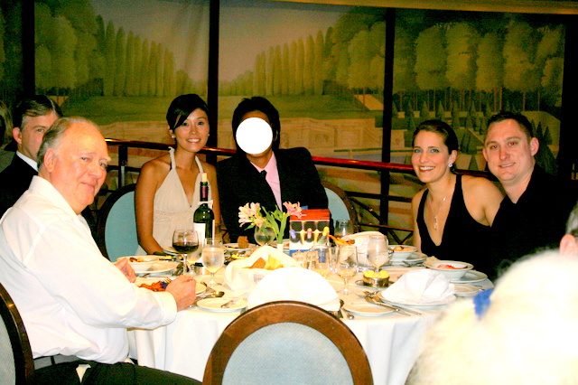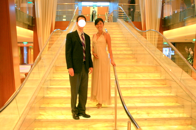 メインダイニングは一部二部と時間が指定されており、テーブルも指定席だ。各テーブル毎にに専属ウェイターもいる。前菜からはじまりスープ・サラダ・メイン・デザート。毎夜コース料理を楽しんだ。フォーマルデーの際も、ドレスアップしてメインダイニングでディナーを楽しむ。普段、Tシャツに短パン姿の西洋人・上下ジャージのアジア人もこの日は見違えた。日本の客船ではお着物の方も多いと聞くが、私たちの船ではドレス・スーツ以外目にすることはなかった。