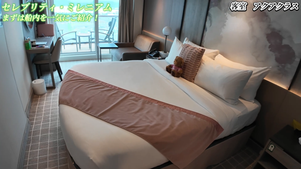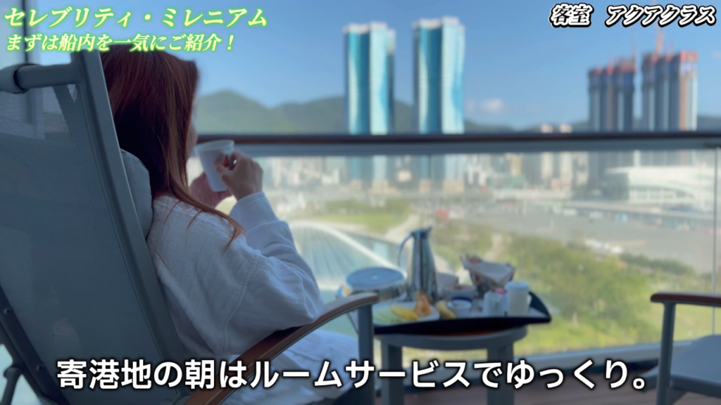 今回のクルーズでは、アクアクラスという特別な客室に滞在しました。このアクアクラスは、美と健康をテーマにしており、特に女性に人気があります。