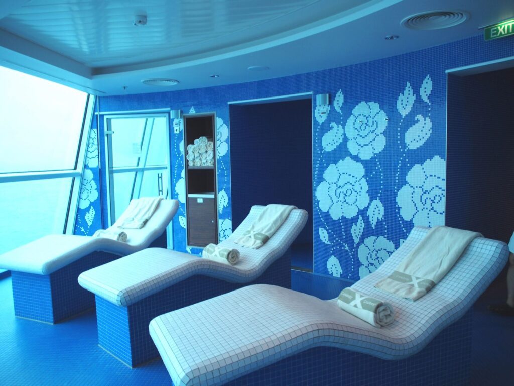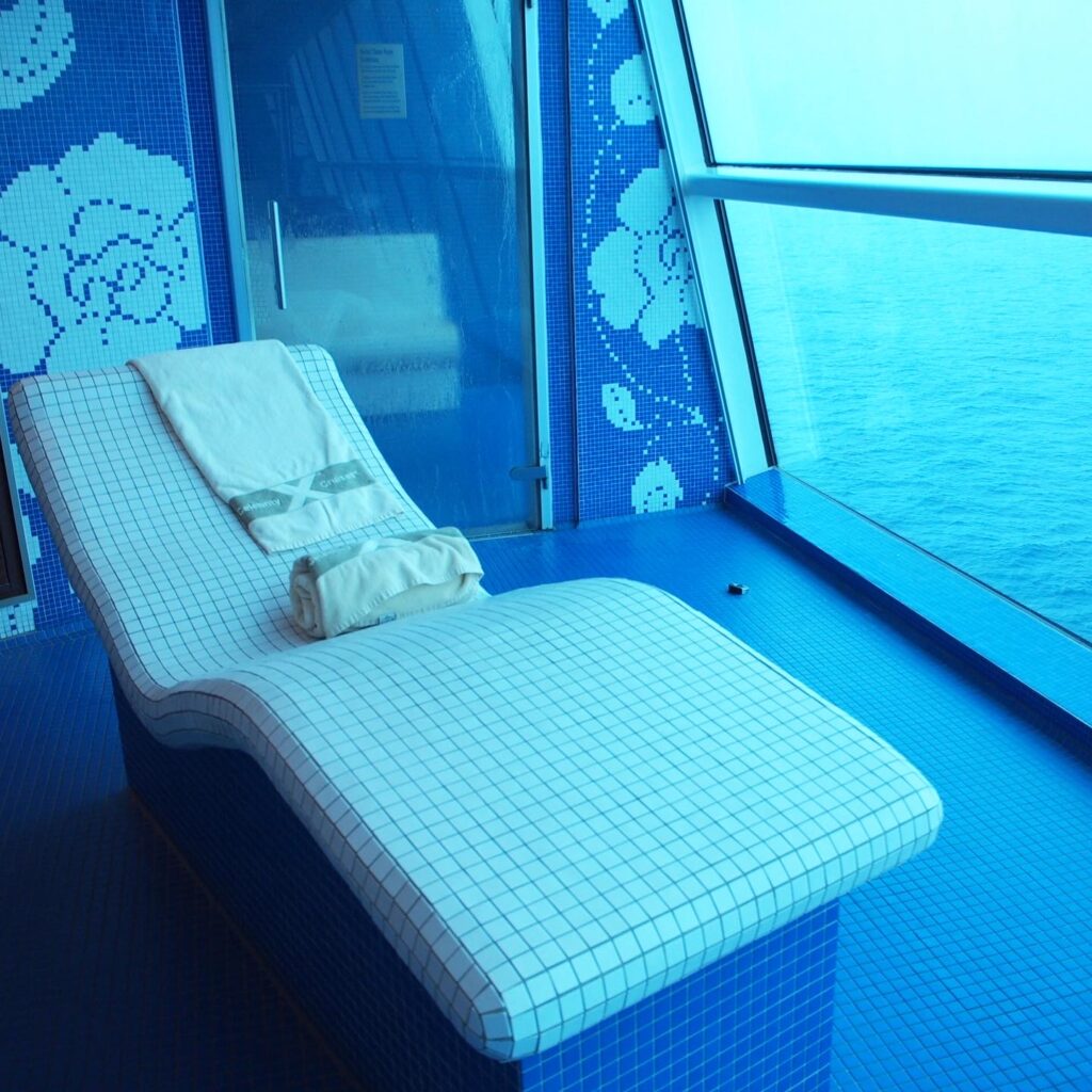 ペルシャンガーデンは船内にある「温浴室」で、中には写真のような寝台の他、サウナやシャワーも備わっている施設です。通常は有料ですが、アクアクラスの乗客は無料で利用できます。