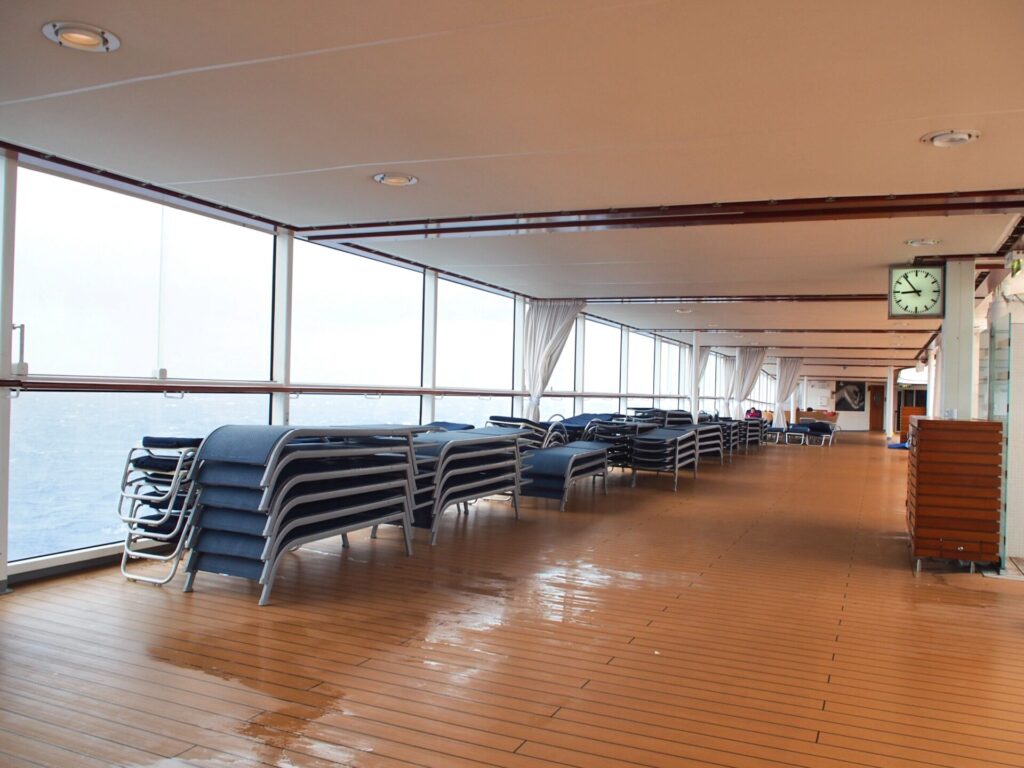 今回のような揺れを感じたのは過去のクルーズ経験(約50日)のうち、この1日のみだったので、基本は「ほとんど揺れない」という感覚を持っていただいて良いんじゃないかと思います。