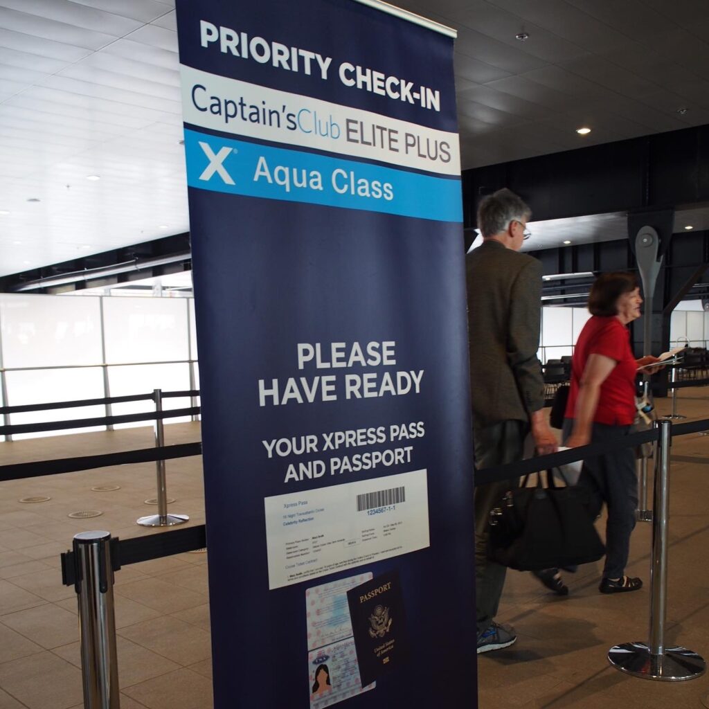 チェックインではルームキー&船内精算として使うためのクルーズカードの登録と受け取り、手荷物検査や税関等を終えたらいざ乗船!