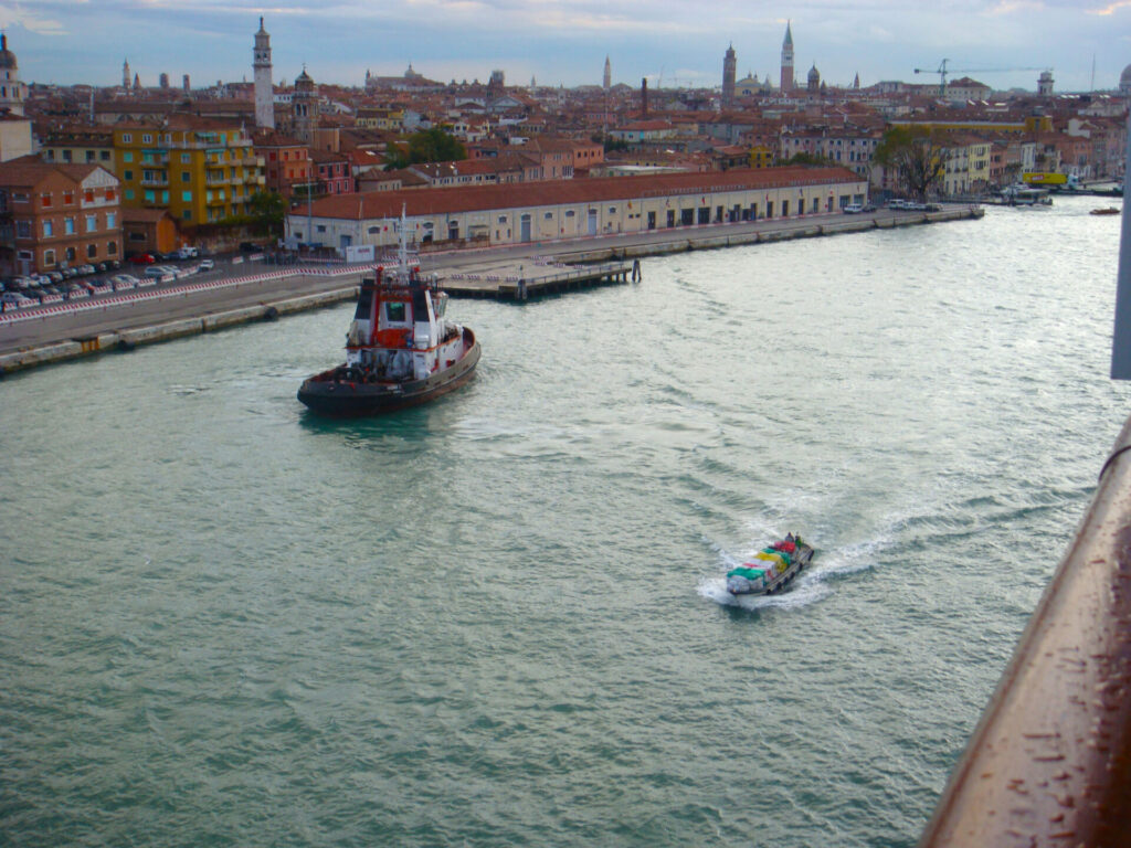 私たちが乗船した時はベニスの港への大型船の入出港が可能でした。