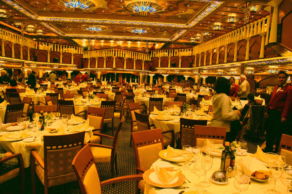 乗客乗員合わせて4500人以上乗船できる大型船のレストランは当然規格外の大きさ!