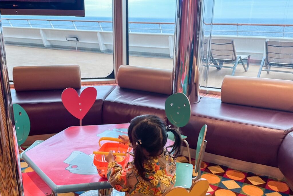 カラフルでポップな内観で、船内の他の場所とも雰囲気が違い、子供の気分転換にぴったりです。