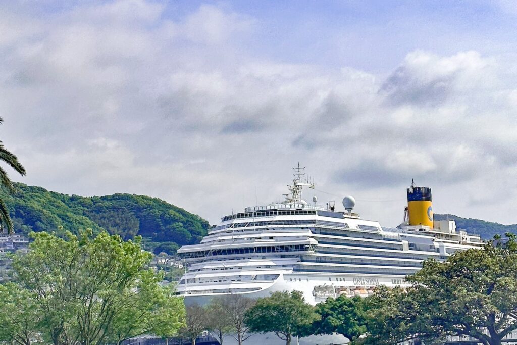 また港から近かったこともあり、グラバー園などを散歩しました。お散歩中にコスタセレーナの姿が見えました!