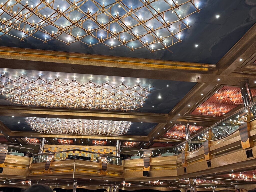 様々な神々の彫刻や、アートが船内の至る所にある独特な雰囲気がテーマパークのようで楽しく刺激的。各デッキの名前が古代ギリシャ神話やローマ神話にまつわる星座で名付けられているのも面白かったです。