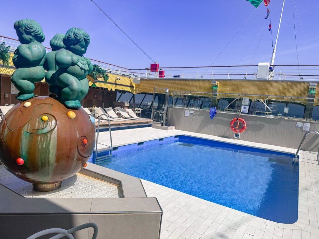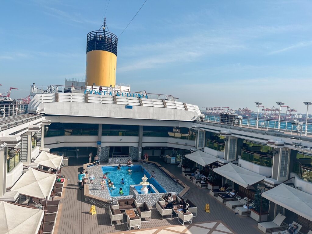 移動時間をプールでリゾート感たっぷりの気分で過ごせるのはクルーズ船の醍醐味。子連れクルーズの大好きなポイントの一つでもあります。
