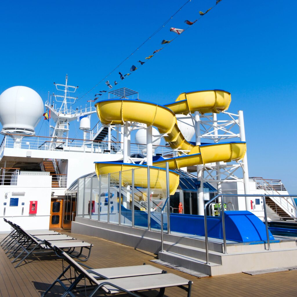 デッキにはウォータースライダーや、ジャグジー、プールもあり、心踊ります!