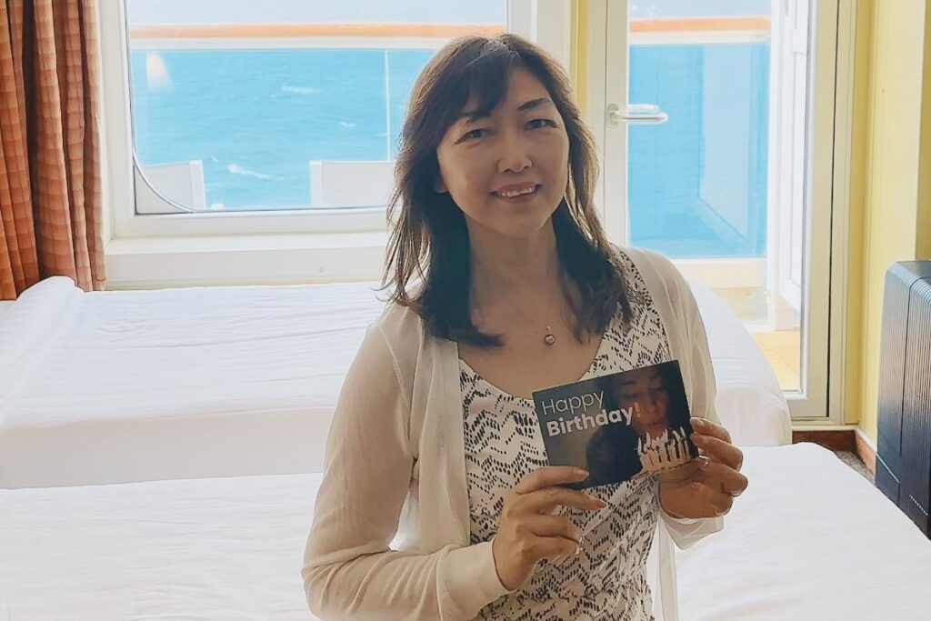 ぜひ皆さまも船上の誕生日を体験してみていただけたらと思います。そして夜はカラオケラウンジでもりあがった初めて出会った人達と一緒に歌い、踊って、さらにはシャンパンをご馳走してもらいました!(主人は部屋で寝ていました。)