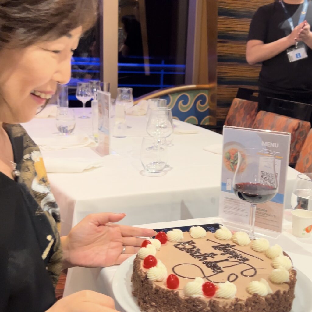 今回クルーズ中に誕生日を迎えるという人生初の体験をしました。私の名前は船乗りだった父が、太平洋のように広い心を持つように、と名付けてくれた洋子(ひろこ)なのですが、いつも「ようこ」と呼ばれる自分の名前が好きじゃない時期もありました。