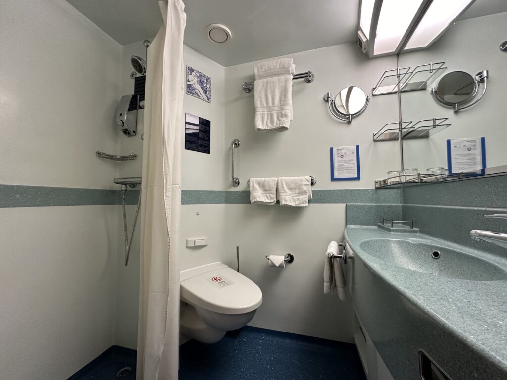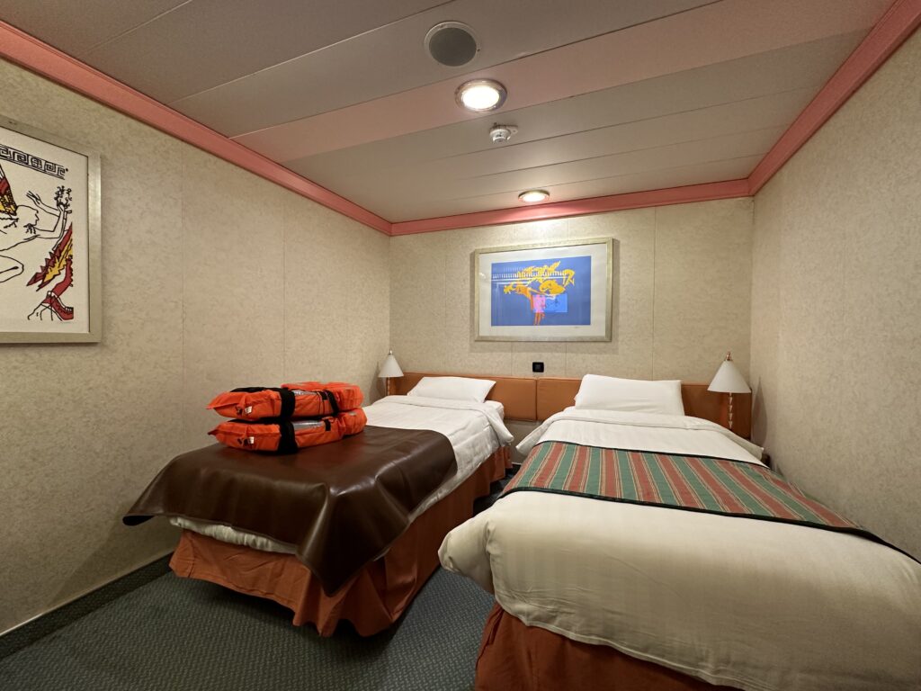今回は窓なしの内側キャビンではありましたが、ツインベッドのお部屋で不便なく過ごしました。船内の設備やイベント、寄港先の観光など満喫し、キャビンではゆっくり身体を休めるには十分に快適な環境。気にしていたシャワーの水の出もストレスはありませんでした。