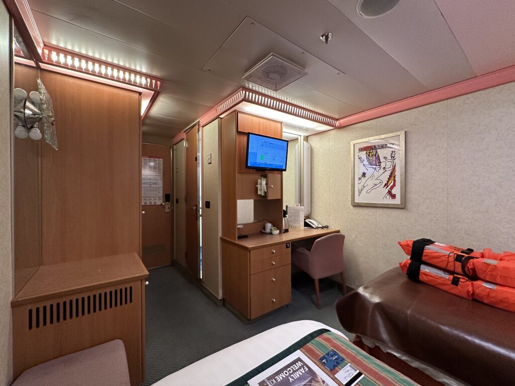 キャビンに到着すると、クルーズターミナルで預けた荷物がすでに運ばれていてびっくり!クルーズならではの快適さを早速実感しました。
