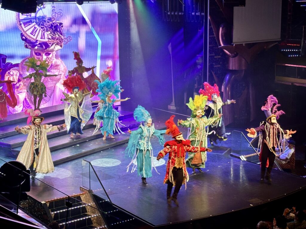 夜はシアターのショーと仮面ナイトで再びイタリアの雰囲気を楽しみました。
