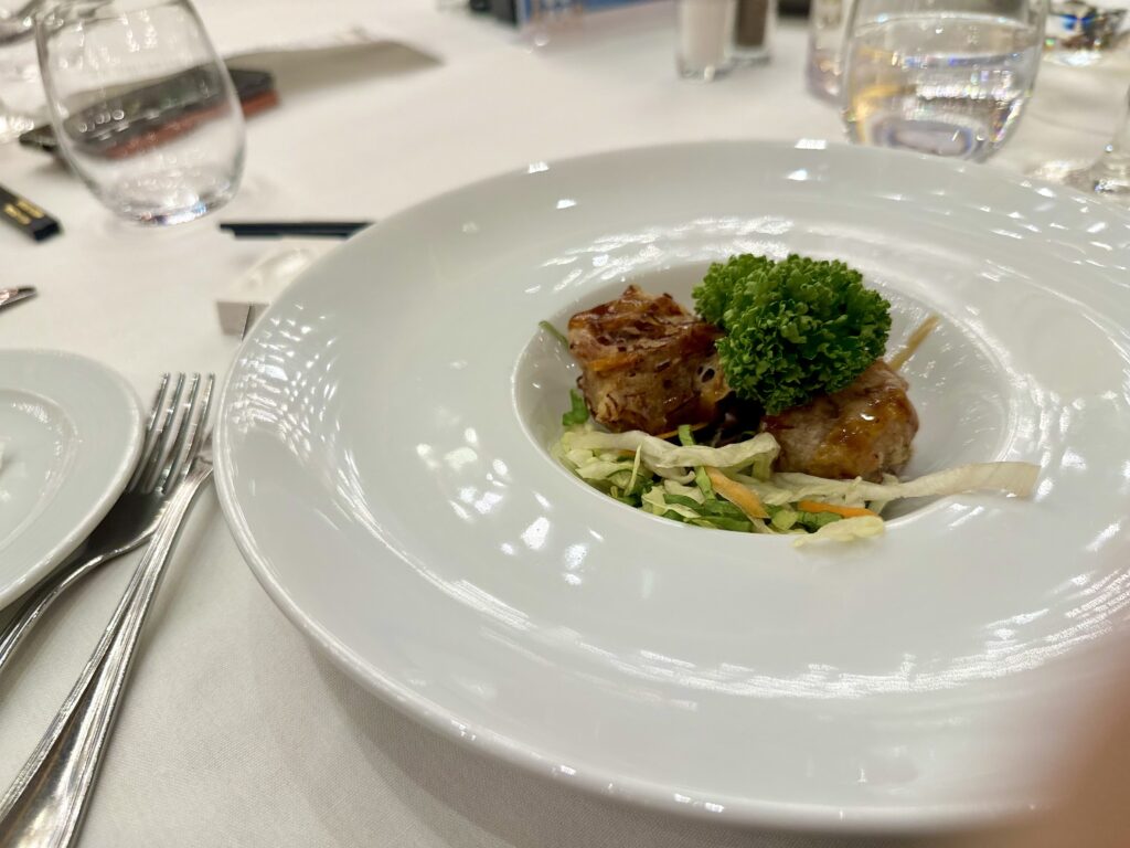 キャビンをチェックし、クルーズ船ならではの避難訓練を済ませ、船内散策をしているうちにあっという間にディナーの時間。