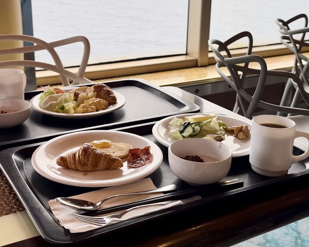 4日目は舞鶴に寄港し、朝はゆったりとしたレストランで朝食を楽しみました。同じテーブルになった乗客と旅行談義に花を咲かせ、素敵な出会いもありました。