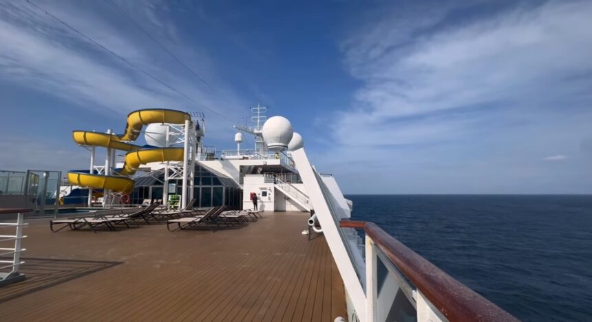 全長290m、全幅35.5mという巨大な船体には、3,780人もの乗客を収容できる1,500室以上の客室があります。13階建ての船内には、4つのプール、5つのジャグジー、そしてスリル満点のウォータースライダーまで完備されています。