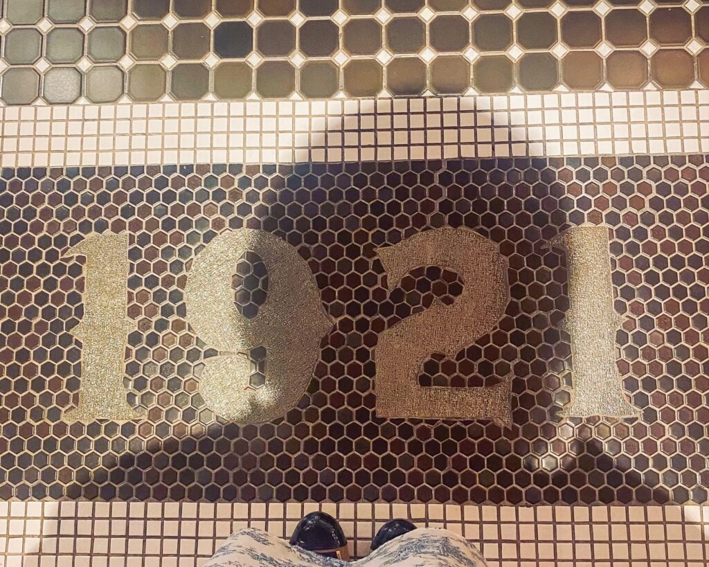 店内は1921年に設立された金融機関の金庫をリノベーションしただけに重厚な作り。店内に入ると設立年「1921」の文字が。