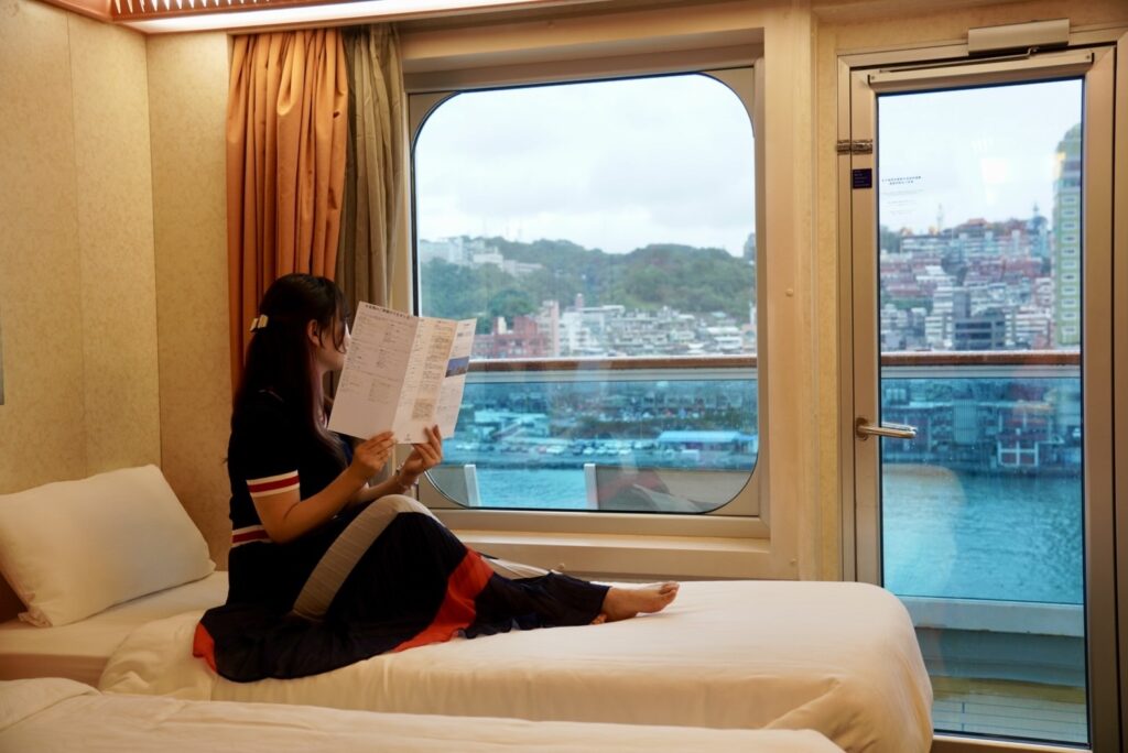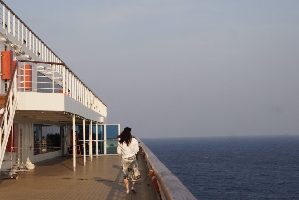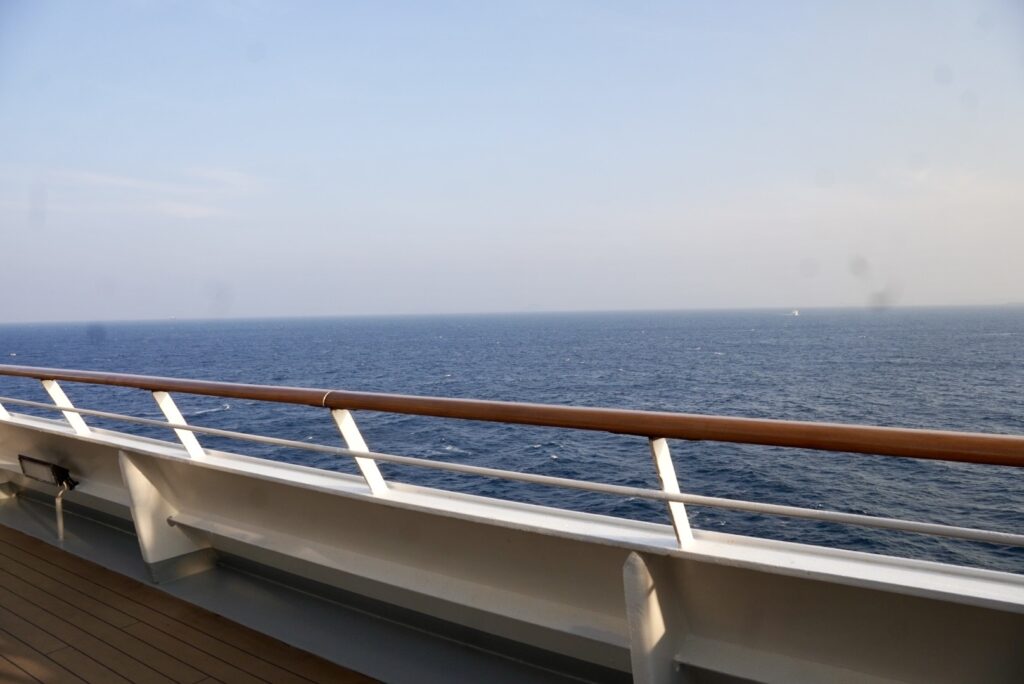 博多港を出発し台湾に向かいます。2日目は終日航海。朝起きて窓を見ると、一面真っ青の海。船ならではの特別感あふれる景色が丸一日続きます。