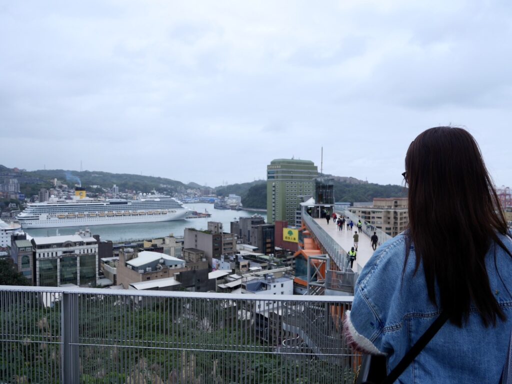 2023年12月にオープンした、無料で基隆の街並みを一望できるスポット。エレベーターで昇ると、コスタセレーナの船も見ることができて思わず嬉しくなってしまいました。