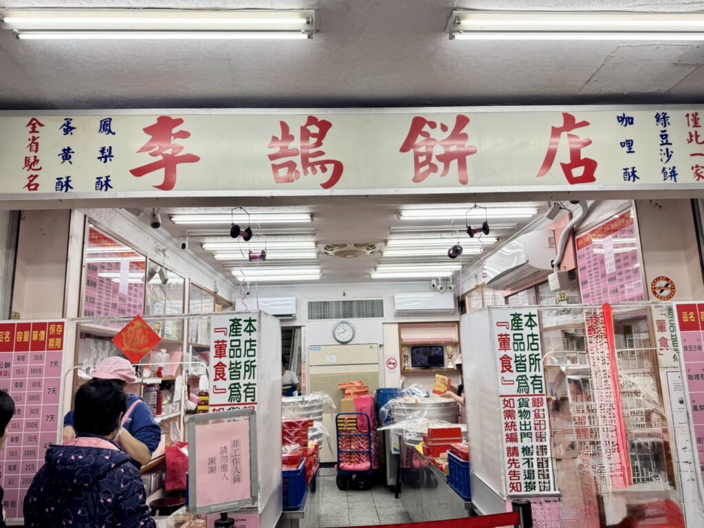 台湾らしさを満喫できる夜市をぶらりと歩き楽しみ、サクほろのクッキー生地がクセになるお土産のパイナップルケーキを買いました。パイナップルケーキが有名な老舗 “李鵠餅店” は、テイクアウトのみなのに常に行列が続いている人気店です。