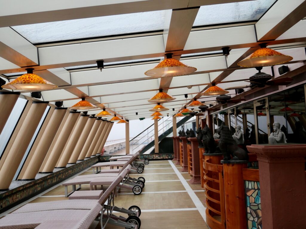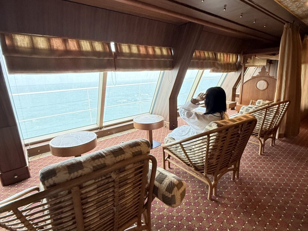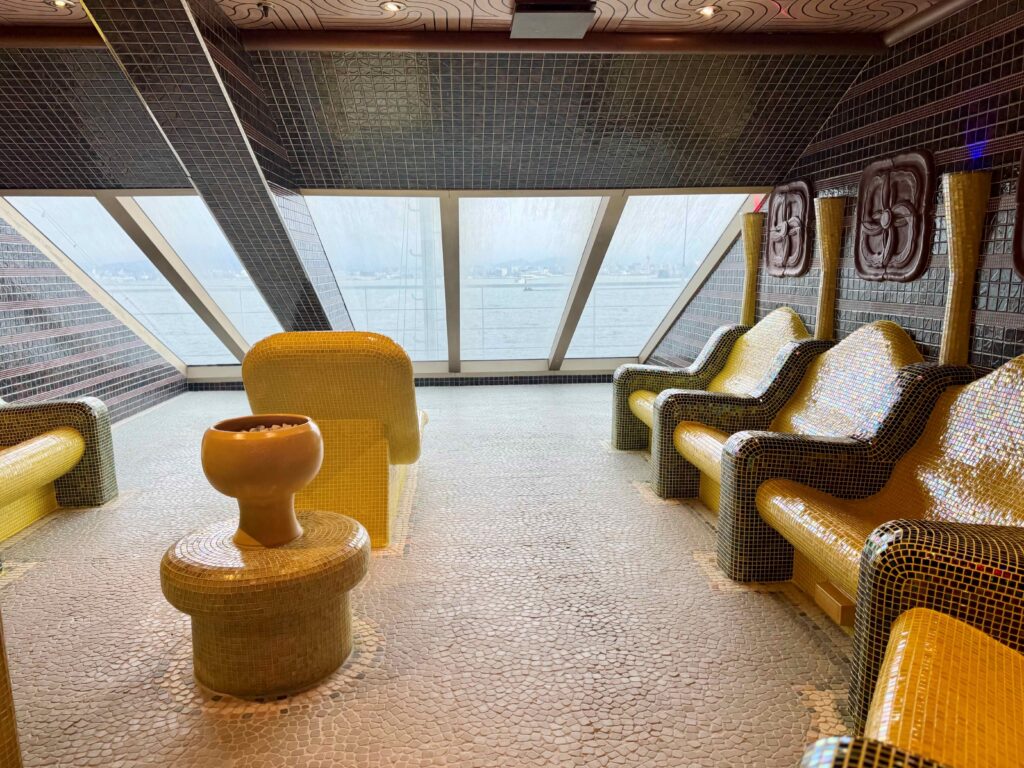スパはデッキ11にサウナや岩盤浴など4つのお部屋と、リラックスルームがあり、デッキ12にはジャグジーとティールーム、マッサージ用のお部屋がありました。