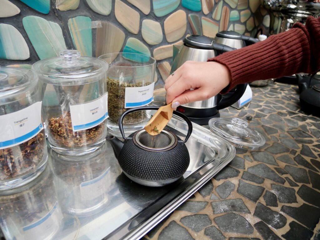 私は岩盤浴のお部屋がお気に入りで、ポカポカ身体を温めながら本を読んで過ごしていました。またティールームではハーブティーが飲み放題なのも嬉しくて、たくさんいただきました。