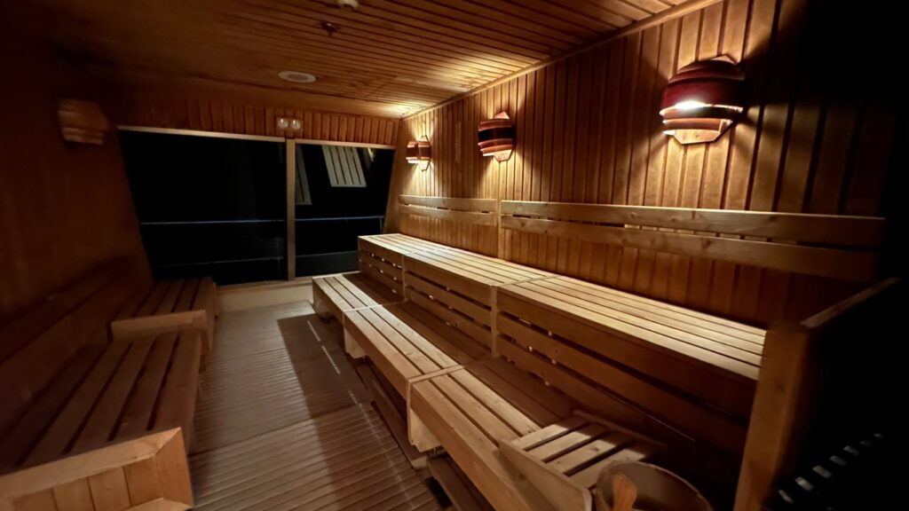 さすがにハイカロリーなものを食べ過ぎたので、食後はサウナに行きました。日中だとガラス越しに海が見えるのでオーシャンビューサウナです。男女別でロウリュウやシャワー室などもあって無料で入れます。