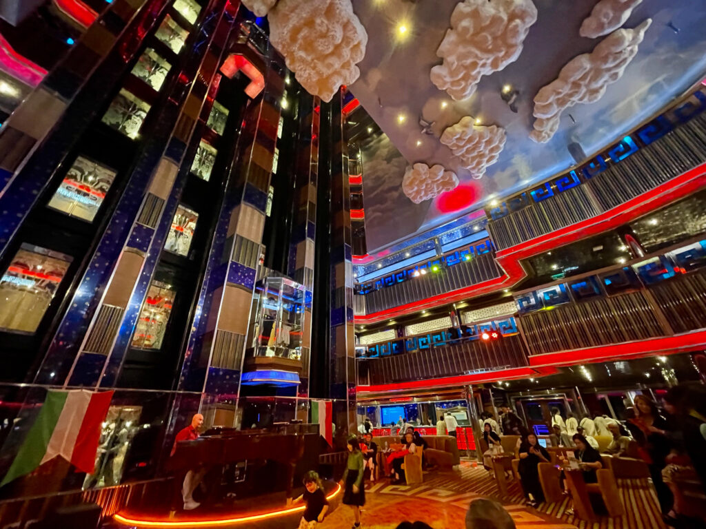 船内には、ダンスショー、ライブ、イベント、カジノなどが楽しめ、まるで街そのもの。