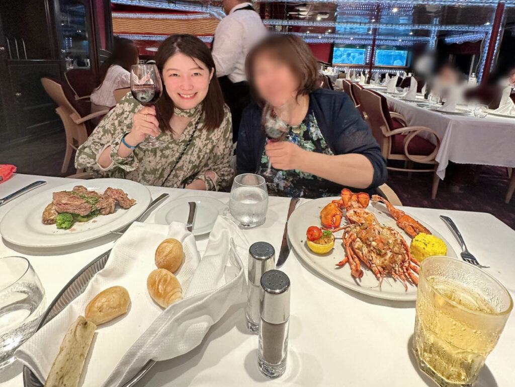 そして何より、コース料理が本当にどれも美味しくて感動…!海の上で、こんなに本格的なお料理が楽しめるなんて思っていなかったので、毎回の食事が旅の楽しみのひとつになっていました。