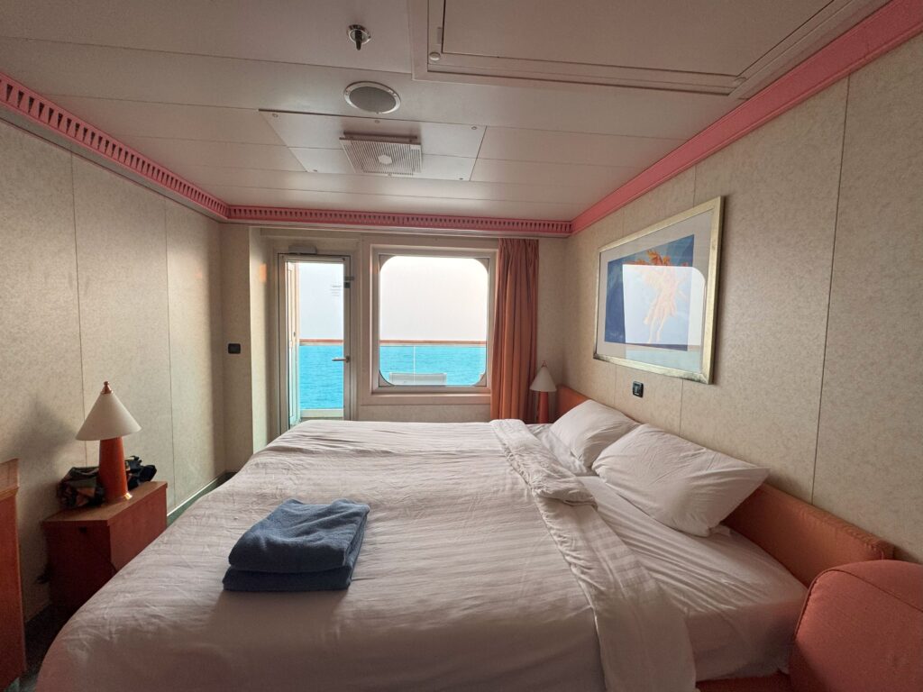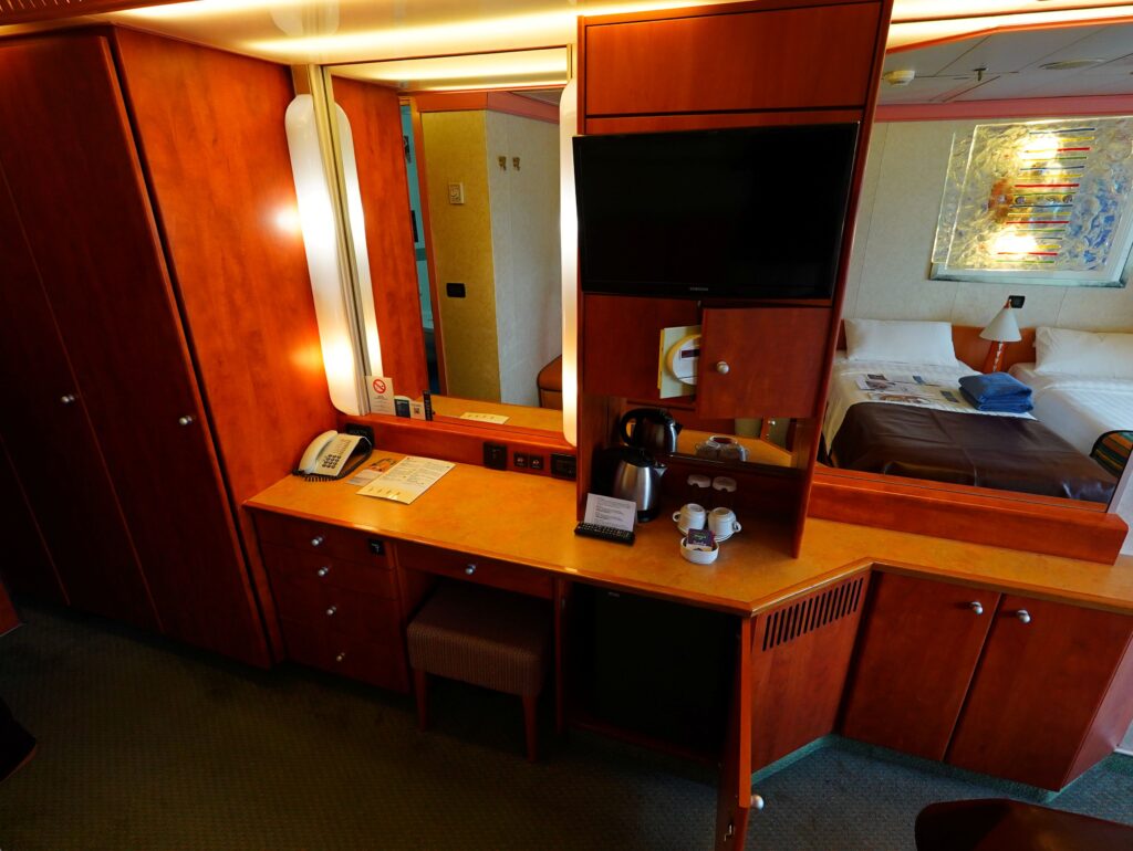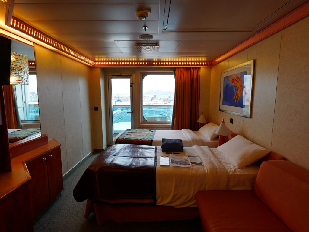 クルーズ旅の宿泊施設は船そのものなので、キャリーを持って移動する手間が一切ないのもラクですね。一度乗船してしまえば、重い荷物を持って移動する必要はなく、下船可能のアナウンスが流れたら、身軽にすぐに観光に出掛けられます。