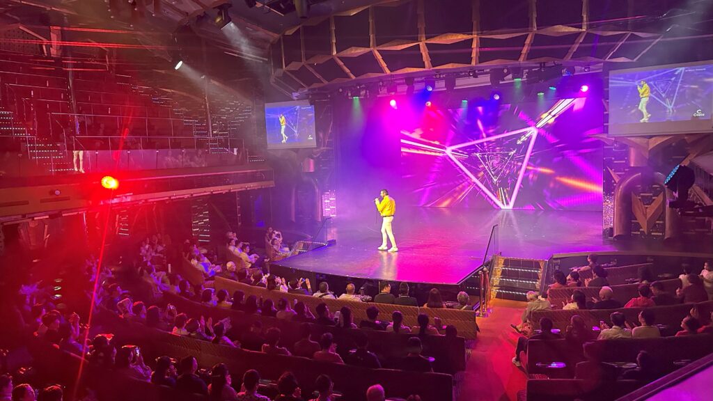 日中はプールサイドで料理のデモンストレーションなど、様々なイベントが楽しめ、夜は毎晩、3層吹き抜けの大きなシアターで日替わりの本格的なショーが開催されました。華やかでアクロバティックなパフォーマンスに、きっと魅了されるはずです。