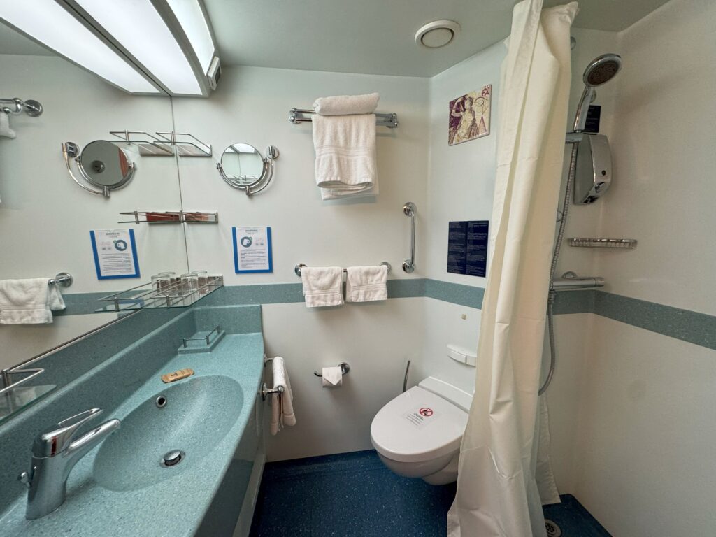 その他、船内には屋内プールやジャグジーもあるので、どの季節に乗船しても水着は忘れずに持っていくと良いかもしれません。海水プールやジムで体を動かした後は、客室ですぐにシャワーを浴びられるのも嬉しいポイント。